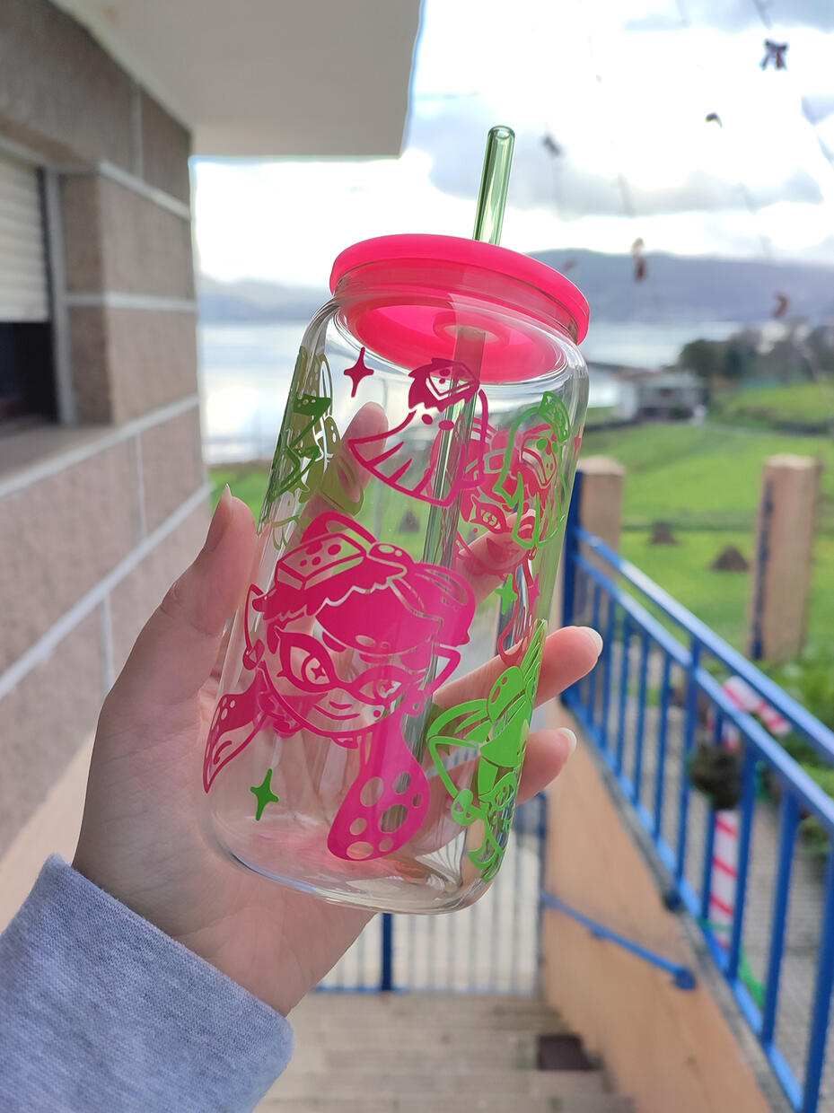Glass cup 550ml with plastic/bamboo lid